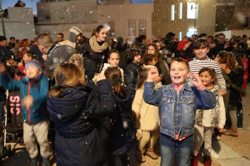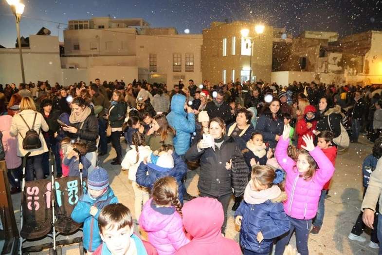 Como el pasado 2 de diciembre, adultos, jóvenes y niños disfrutaron de esta nevada como una actividad roteña nueva en Rota que este año se ha incluido en la programación navideña para animar la zona centro.