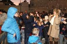 Durante unos minutos, la nieve artificial ha caído sobre la céntrica plaza mientras los ciudadanos que han asistido han disfrutado haciéndose fotos e inmortalizando estampas únicas en la localidad.