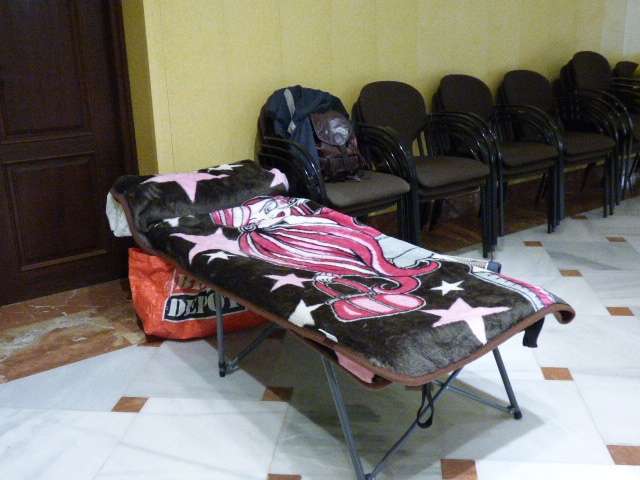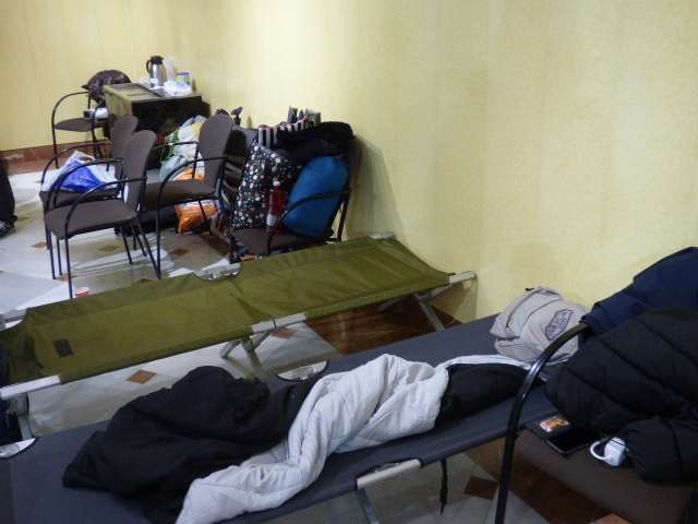 Con algunas camillas auxiliares haciendo de camas, calentadores y algunas mantas, han pasado la primera jornada de las que les quedan por pasar porque, en principio, el encierro como ya anunciaron ayer y han vuelto a reiterar hoy, es indefinido.