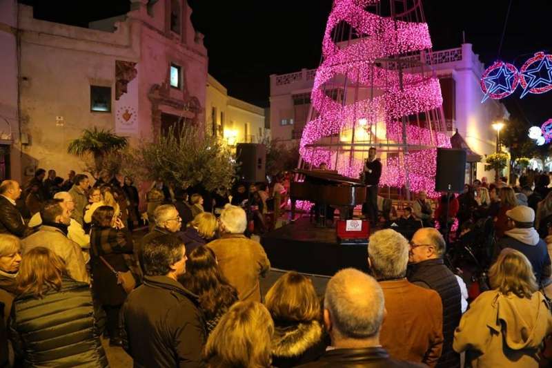 La plaza de San Roque acogió anoche el concierto en directo de Carlos Redondo al piano y Enrique Galán al saxo, dando un ambiente muy navideño a la zona del centro. Un punto en el que se congregaron algunos ciudadanos llamados por las melodías de estos dos músicos que atrajo la atención de aquellos que pasaban por la céntrica plaza.