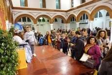 Con casi una hora de retraso según el horario previsto, los niños comenzaron a impacientarse en la cola que se formaba poco antes de las seis de la tarde en el Mercado Central de Abastos donde en el patio, el heraldo real recibiría a los pequeños. Aunque estaba anunciado que la recogida de cartas se iniciara a las 6 de la tarde, la realidad es que el Cartero Real llegó prácticamente a las 7, una vez terminado el pasacalles que lo acompañaba desde el centro cultural "El Molino" desde el que partió a las 17.00 horas hasta el mercado.