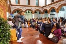 Una vez allí, con aplausos de los presentes para darle la bienvenida, por sus rodillas fueron pasando centenares de niños ilusionados con poder hablar con el Cartero Real y contarle en persona que han sido buenos y que por tanto, Melchor, Gaspar y Baltasar podrían traerle la lista de juguetes escrita.