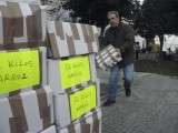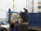 Desde primera hora de esta mañana, los socios y voluntarios de la asociación "Sáhara Libre" de Rota se han puesto a trabajar para cargar el camión que partirá con todos los alimentos y materiales que se enviarán como cada año a los campamentos de refugiados saharauis.