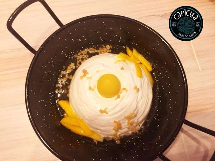La carta, renovada al completo, incluye un apartado delicioso a los postres que siempre son caseros y que son un complemento perfecto para terminar una buena comida o un repaso a las tapas. Entre ellos, se puede encontrar desde una típica torrija al blondie con helado de oreo (que es una versión del brownie pero con chocolate blanco), la rica tarta de queso curado de "El Bucarito" o el misterioso huevo hecho a base de mango y cremoso yogur griego.