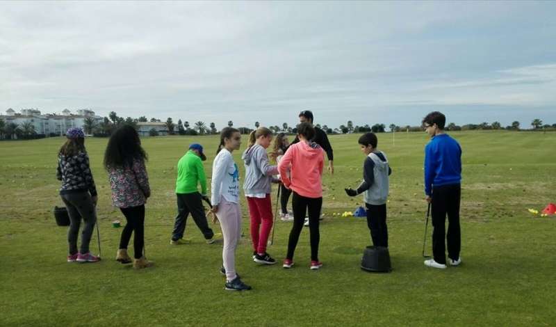 Unos 250 alumnos de sexto curso de Primaria de varios colegios de la localidad han tenido la oportunidad de conocer algunas nociones básicas del golf en unas sesiones que se han impartido en el campo de golf de Costa Ballena.