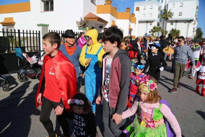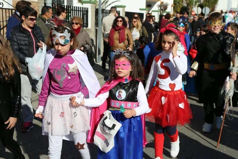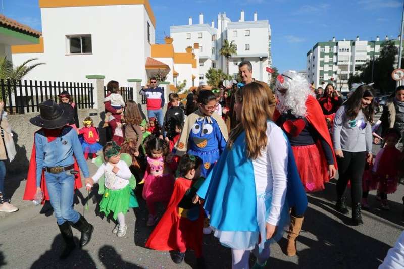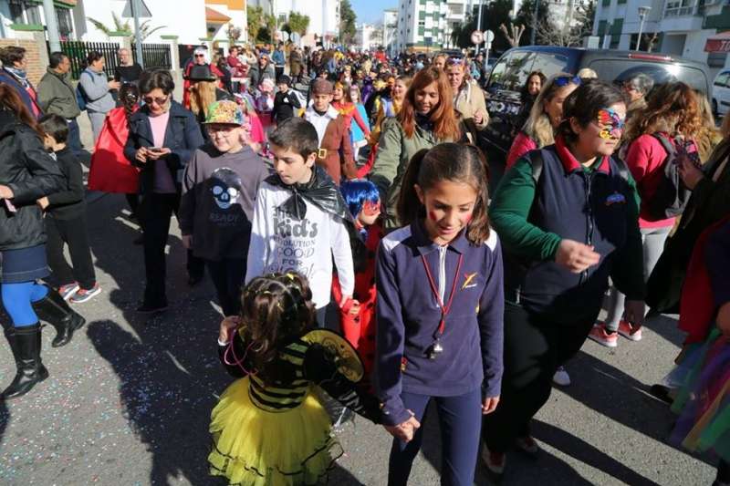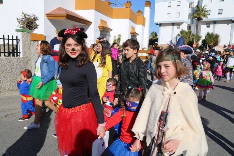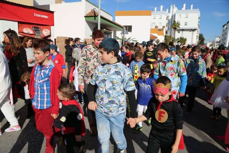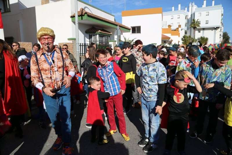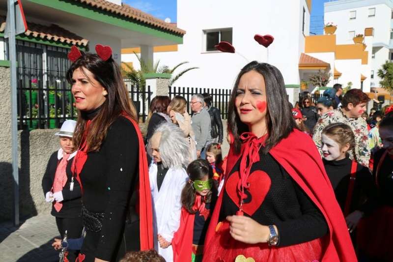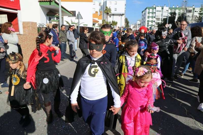 El entorno del colegio Maestro Eduardo Lobillo se ha llenado de colorido y disfraces en la mañana de este viernes con el pasacalles carnavalesco que han protagonizado los alumnos del citado centro.