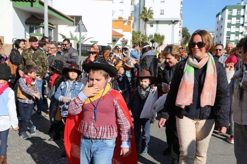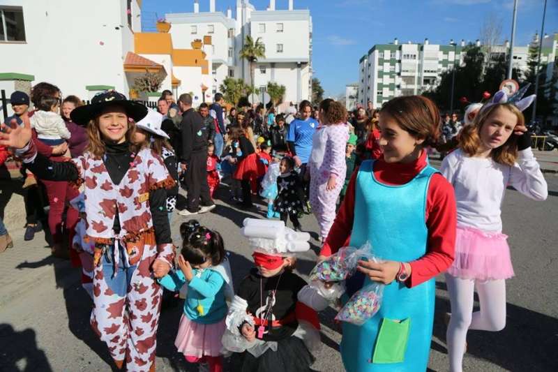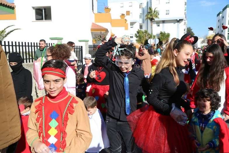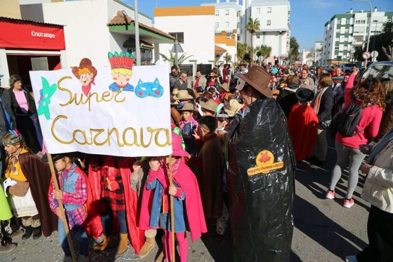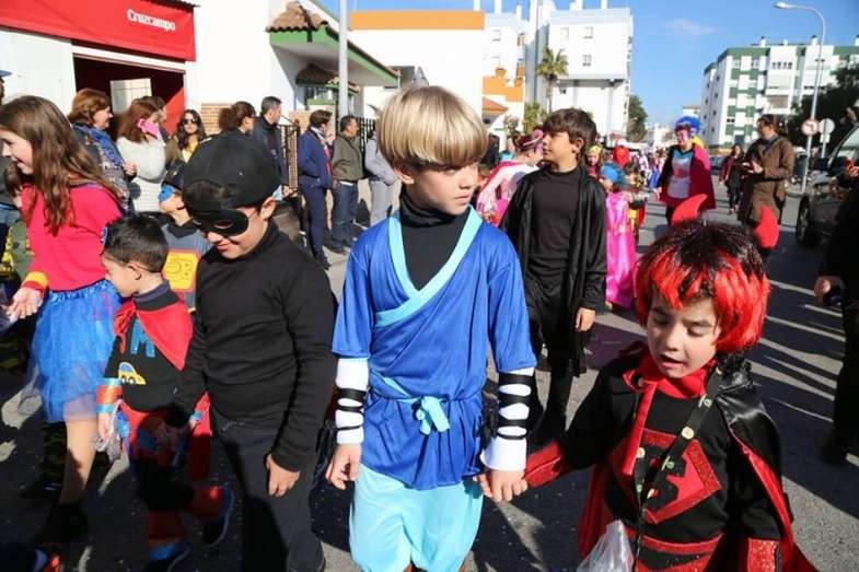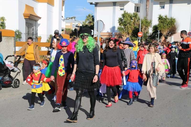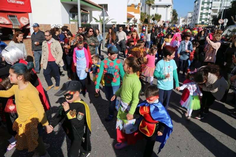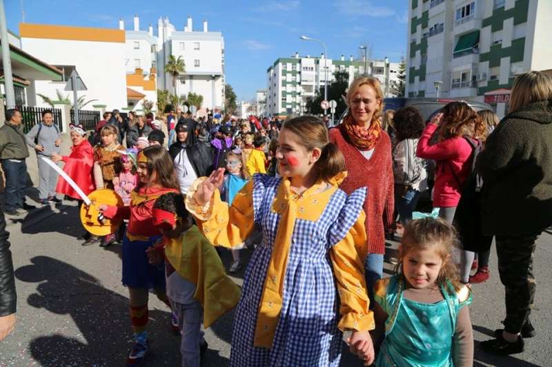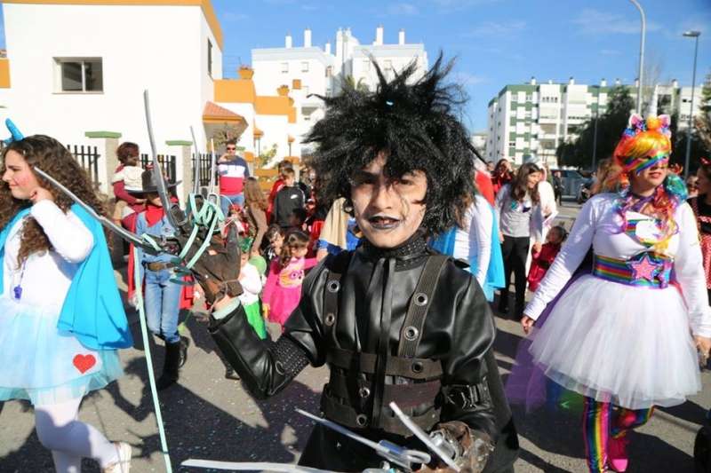El entorno del colegio Maestro Eduardo Lobillo se ha llenado de colorido y disfraces en la mañana de este viernes con el pasacalles carnavalesco que han protagonizado los alumnos del citado centro.