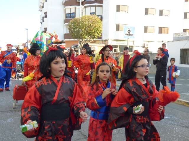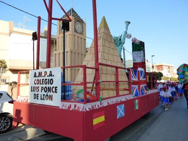 Luis Ponce de León y su representación de ciudadanos del mundo; Pedro Antonio de Alarcón con la recreación del universo, planetas, estrellas, astronautas...; Azorín con el dulce tipo de "Estamos para comernos" donde había tartas, chucherías, caramelos...; los chicos de la Asociación de Discapacitados como "Los que no pierden el tiempo"; San José de Calasanz caracterizados de los personajes de la película Coco de Disney; y los súper héroes de Maestro Eduardo Lobillo, han ido sucediéndose en un desfile en el que en medio de cada carroza se veía a grupos más reducidos con otros disfraces.