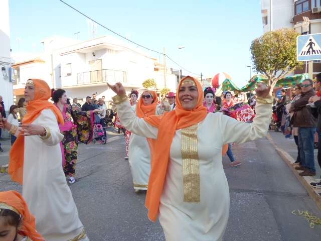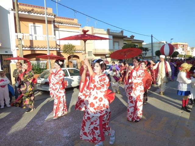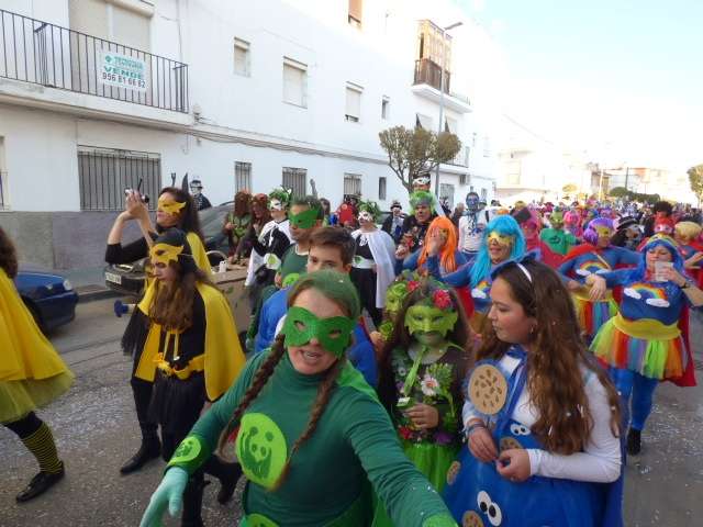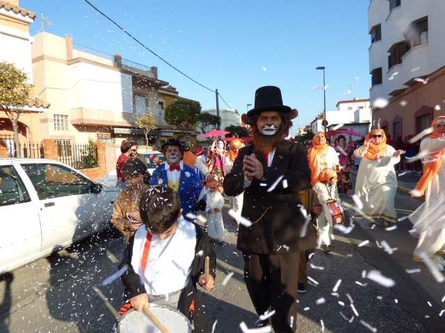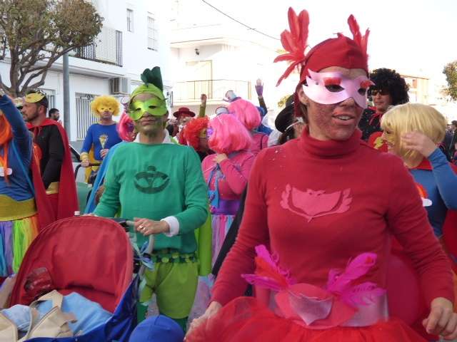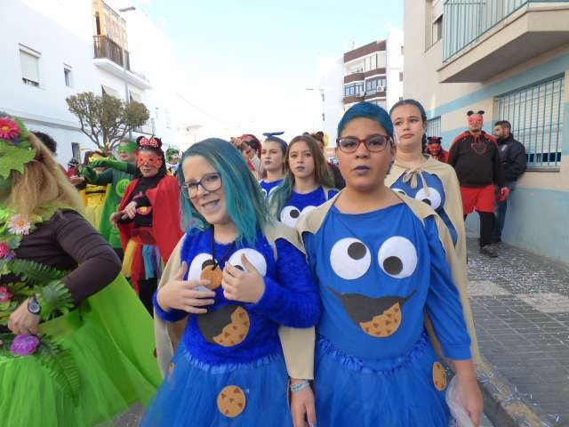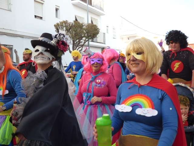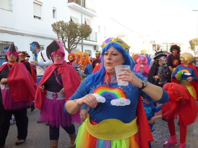 Y es que aunque los colegios se llevan el protagonismo, también hay aficionados a la fiesta que se reúnen en torno al último día de Carnaval para lucir tipo. Este año, ha habido algunos muy trabajados. Desde la veterana Regla Orcha, que este año iba de turista amamantando a sus hijos, a las piezas de Lego, abejas y apicultores, caníbales, indios, egipcios, sirenas, granjeros, una representación marina de Los Corrales de Rota hasta enamorados del programa televisivo First Dates, una flexible gimnasta, super héroes, señales de tráfico, zíngaras, y muchos más que han contribuido a dar color al último día de esta fiesta de Carnaval.