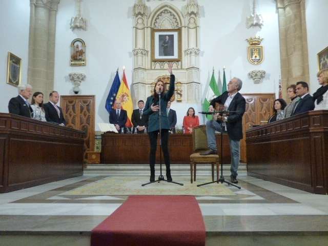 El pleno ha terminado con la interpretación del himno de Andalucía a cargo de la joven Alba Bazán al cante y Manolo Lin a la guitarra que con puro sentimiento lo ha interpretado llegando a emocionar a buena parte del público asistente.