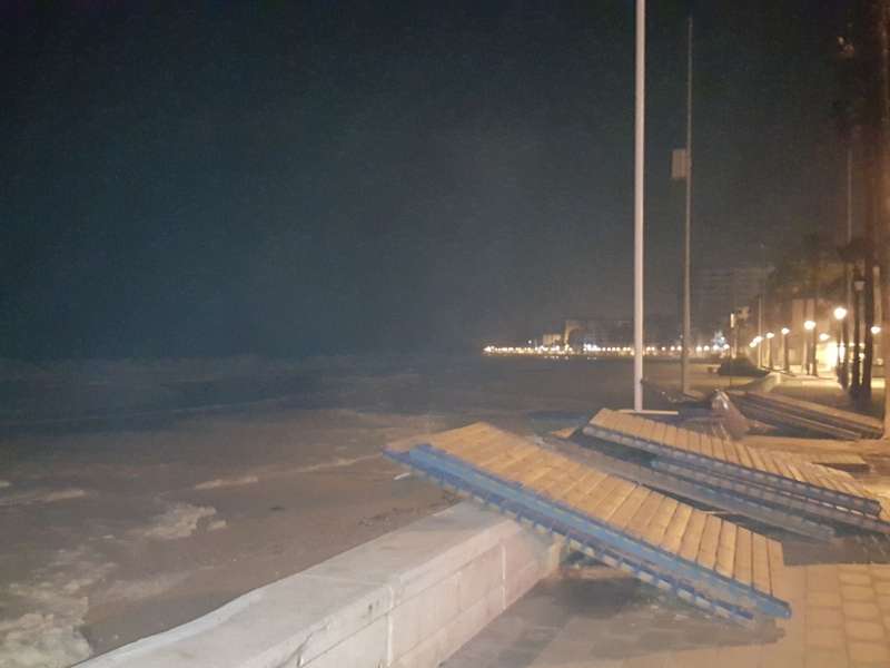 Pero la generalidad, ha sido una noche tranquila más allá del ruido continuo del viento, cuyas previsiones marcaban hasta picos de 70km/hora, y el fuerte oleaje que ha dejado algunas estampas en las que infraestructuras de playas que ya estaban colocadas se han visto algo afectadas por bajadillas o pasarelas de madera. Por lo demás, una noche de viento y lluvia, con alguna caída de granizo sobre las 3.30 horas de la madrugada y poco más.