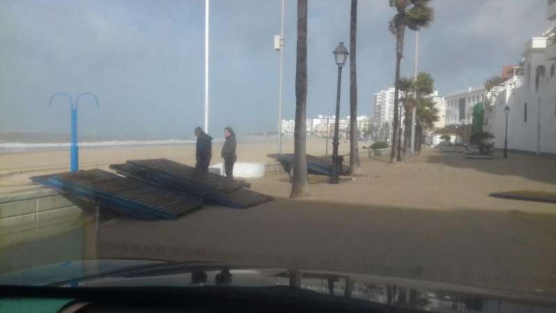 Aunque es cierto que el temporal que se vive en estos días principalmente con fuerte viento y mar muy picado con grandes olas, no ha dejado hasta ahora graves consecuencias, es más, la pasada noche fue relativamente tranquila en cuanto a incidencias, no puede decir lo mismo la delegación de Playas del Ayuntamiento de Rota que ha visto cómo el trabajo adelantado para tener la costa a punto para Semana Santa, se ha ido al traste.