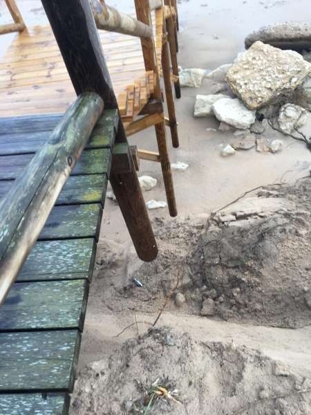 Los daños en pasarelas de acceso han sido algo menor ya que ayer, en previsión de la alerta por temporal, el propio delegado municipal y trabajadores de la delegación, procedieron a retirar parte de las pailas para evitar que la marea las arrastrara y sufrieran más daños. Algunas se han visto afectadas y se procederá a su reparación, pero en general, gracias a la previsión, se ha evitado males mayores.
