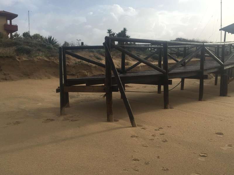 Principalmente, según ha sabido Rotaaldia.com por parte del delegado de Playas, Manuel Jesús Puyana, la parte más afectada es el tramo de playa que va desde el Puntalillo a Punta Candor donde la mayoría de bajadas y accesos a la arena han quedado muy dañados, algunos de los cuales casi en volandas debido a la pérdida de arena. Y es que el viento y la alta marea no sólo ha perjudicado las infraestructuras ya colocadas, sino que se ha comido casi de forma literal hasta 4 metros de duna.