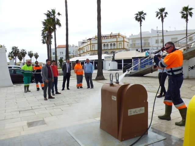 El alcalde de Rota, Javier Ruiz, junto al delegado de Limpieza Viaria, José Antonio Medina, ha presenciado esta mañana el funcionamiento del nuevo vehículo satisfecho con la inversión pero sobre todo, con el buen resultado que está convencido que dará para conseguir una Rota más limpia, algo para lo que de todas formas, hace falta colaboración ciudadana.