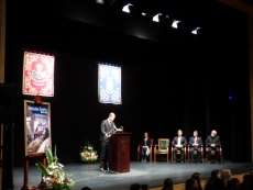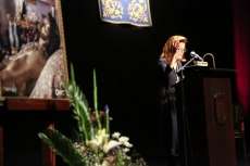 [Img #88489]La pregonera se ha sentido cómoda en el escenario y ha agradecido esta oportunidad de desgranar sus sentimientos más profundos como cofrade y cristiana. Su presentación, que ha corrido de la mano de su hijo Raúl, ha estado llena de palabras de admiración y cariño donde se ha presentado a la pregonera como una mujer de fe comprometida, humilde y orgullosa de sus raíces, que ha tenido la oportunidad de pregonar a San Isidro o exaltar las fiestas del Rosario.