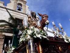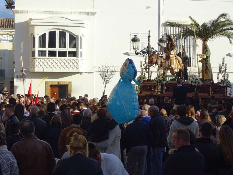 La borriquita espectacular,pero no tanto la legion de contraguias y capataces que lleva alrededor y la mitad no le tiene ni una pizca de devocion al stmo,lo que es capaz de hacer uno para su lucimiento personal vestidito de chaqueta y tocar un llamador,pq si no es asi jamas lo tocaran