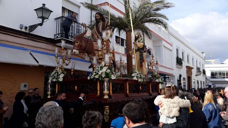 Aunque parecía que el inicio de la Semana Santa iba a quedar deslucido por la amenaza de lluvia que en los primeros partes meteorológicos indicaban que por la tarde llovería, finalmente el Domingo de Ramos en Rota se ha salvado con buen tiempo y mucho público en la calle.