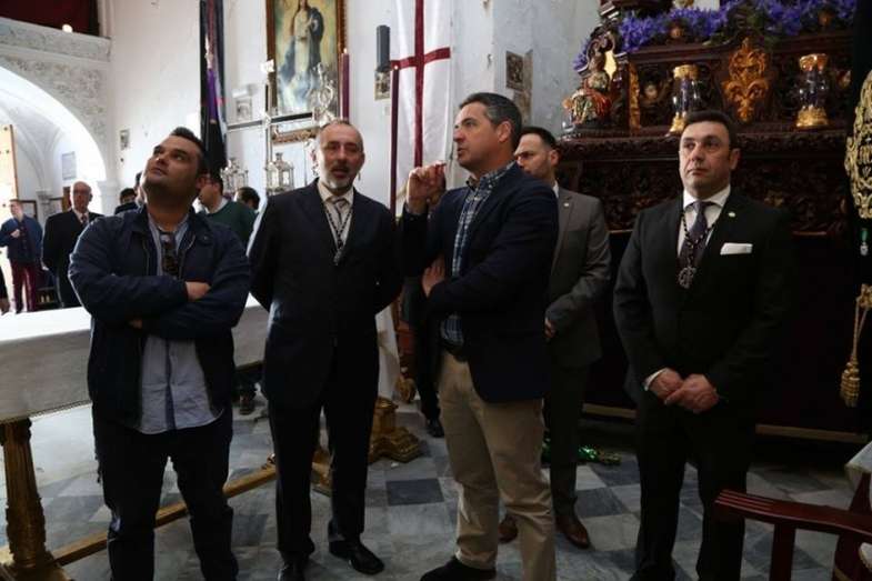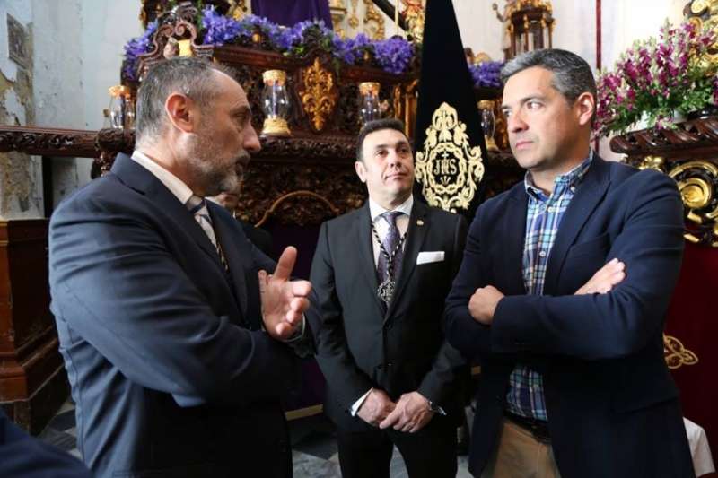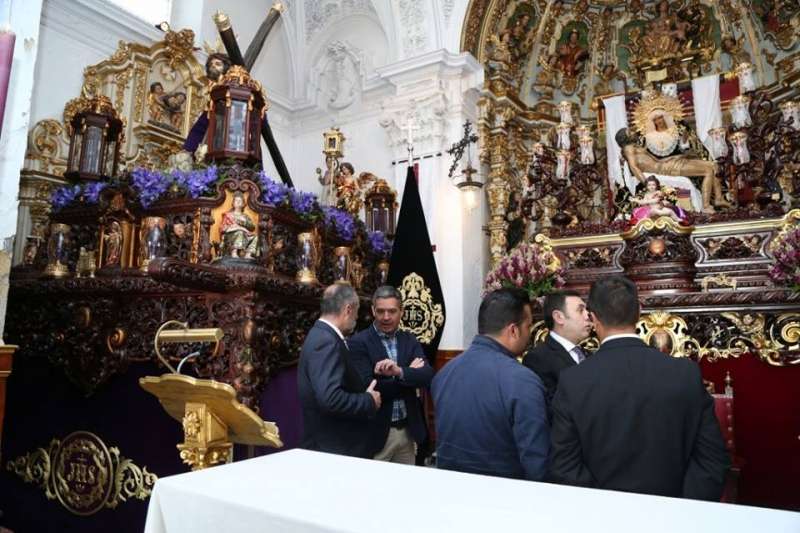 El primer edil se ha desplazado a la capilla de la Caridad donde ha podido conocer de mano del hermano mayor de la Salud, Manuel Gallero, y miembros de la hermandad, los preparativos y expectativas en las horas previas a la salida procesional de Nuestro Padre Jesús de la Salud en sus Tres Caídas y María Santísima de la Caridad.