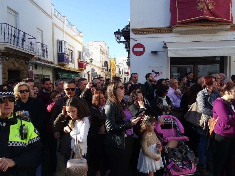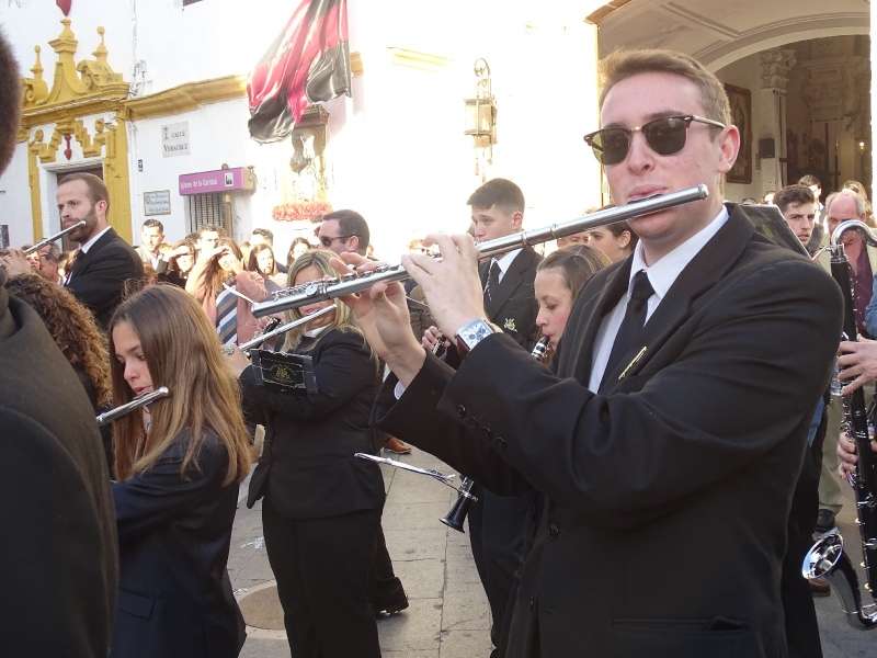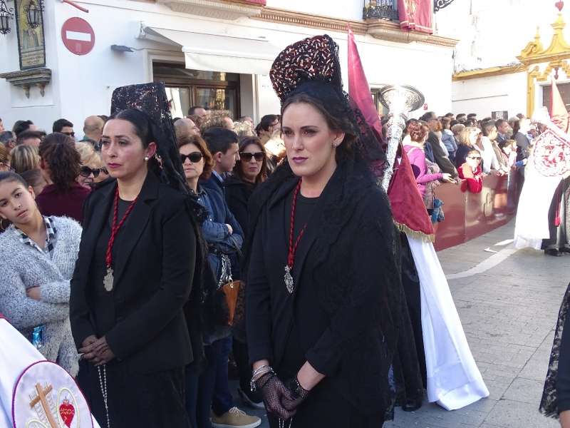 Aunque la tarde comenzó fría para la Hermandad de Nuestra Señora de los Dolores, el viento amainó en algunos momentos y permitió una jornada de Jueves Santo más agradable para los cientos de roteños y turistas que han llenado las calles de la villa arropando a esta cofradía que a las 7 de la tarde iniciaba su estación de penitencia. Una plaza de Andalucía llena ha permitido un inicio de estación de penitencia pleno donde se ha notado las ganas de seguir disfrutando de la Semana Santa.