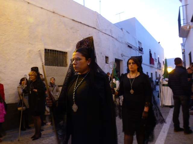 A las siete y media de la tarde se abrían las puertas de la capilla y aunque la hermandad llevaba en mente que si había amenaza de lluvia aligerarían el paso para no mojarse todo fue bien hasta que sobre las 22.10 horas, empezaron a caer algunas gotas que parecía que iban a apretar y con ello, la temida lluvia. La Hermandad de la Veracruz decidió entonces rápidamente irse a capilla. A esa hora, el Santísimo Cristo de la Veracruz estaba en la puerta de la capilla de la Caridad y María Santísima de las Angustias bajaba por Blas Infante, ambos enfilaron, sólos y sin cortejo, la calle Charco, por donde este año no ha pasado ninguna cofradía al estar en obras pero que era la vía más directa para llegar a San Roque. Tras los dos pasos, un corteo de hermanos penitentes y al final, la Cruz de Guía que se encontraba por Veracruz cuando todo sucedió y tuvo que deshacer el camino andado.