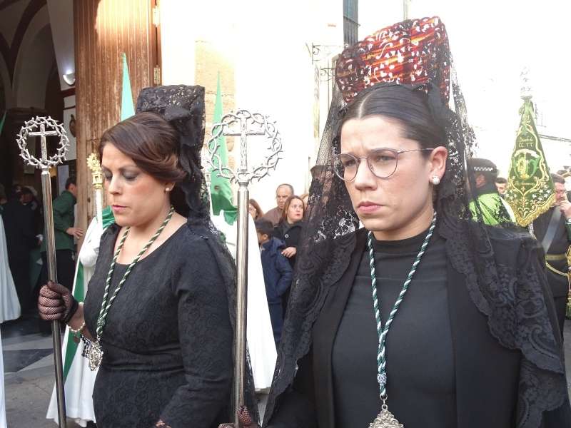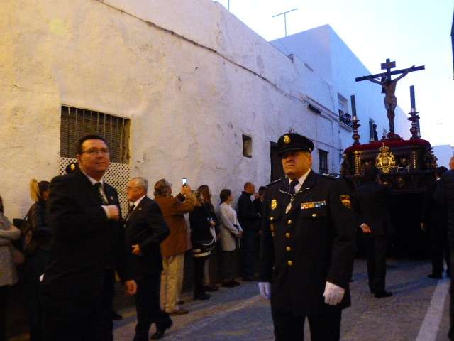 Los dos titulares veracrucistas entraron en capilla antes de las once de la noche cuando deberían haberlo hecho a la 1 de la madrugada. Estación de penitencia por tanto interrumpida y algo accidentada. A pesar de ello, las casi tres horas que estuvieron en la calle el Cristo de la Veracruz y las Angustias, estuvieron arropados por un cortejo de unos 200 hermanos, hermanas de mantilla, y las bandas de música de Cornetas y Tambores de la Asociación Musical "Entre Azahares" para el cristo y la de la Hermandad del Nazareno para la virgen.