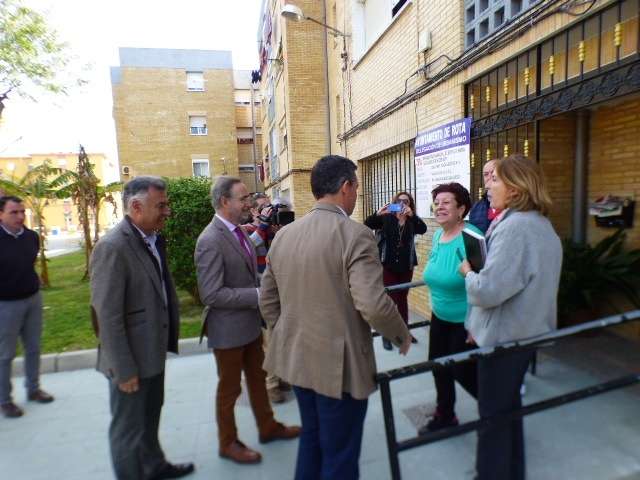 Siete comunidades de vecinos situadas en la barriada de las 512 viviendas, en la calle Zoilo Ruiz-Mateos y en la barriada San Antonio, se están beneficiando de la colocación de ascensores en sus bloques, lo que va a suponer para todos una mejora en su calidad de vida, sobre todo, para aquellos que tienen problemas de movilidad o avanzada edad. Y es que vivir en un cuarto piso sin ascensor puede ser una limitación tal que te deje en casa más tiempo del deseado, pero la barrera que supone una escalera y todos sus peldaños, es difícil de saltar cuando se superan los 70 años o cuando se tiene un bebé al que hay que bajar a la calle en carrito. Por eso, hoy los vecinos de las 512 estaban contentos y así se lo han demostrado al alcalde de Rota, Javier Ruiz, que ha visitado los bloques que se han beneficiado del programa de ayudas de la Junta de Andalucía junto al consejero de Fomento y Vivienda, Felipe López, al delegado territorial de la misma cartera, Federico Fernández, a la delegada municipal Encarnación Niño.