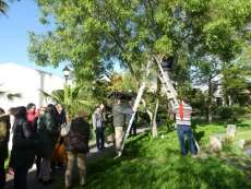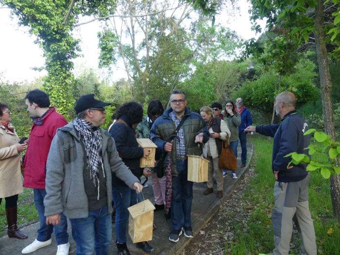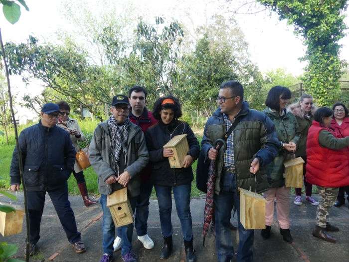El punto de partida fue el jardín botánico "Celestino Mutis" donde se colgaron la mayoría de las 34 cajas nido para aves insectívoras. En esta primera tarde, los alumnos y familiares de la Asociación de Discapacitados se dividieron en dos grupos para poder atender simultáneamente a las explicaciones del osteólogo Jesús Peña Santana, que tiene su taller en las instalaciones del mismo jardín botánico.