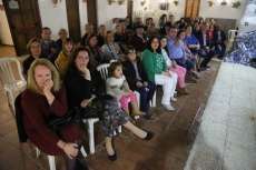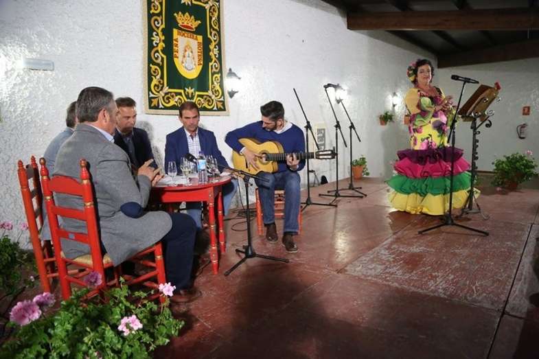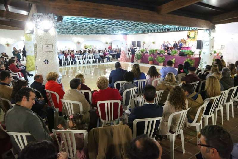 Aunque  por la zona central de la caseta "Nueva Jarilla" se colaba el agua de la lluvia que caía, el ambiente no se fue frío sino todo lo contrario. María estuvo arropada aparte de por miembros de la política local, entre ellos el alcalde de Rota, Javier Ruiz, por amigos, rocieros, feriantes y miembros de la Peña Rociera Roteña que organizaba este IV Pregón de la Feria de Primavera con la intención de ensalzar aún más la fiesta.