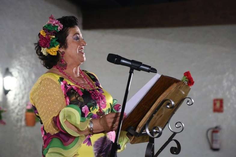 María la del Neo estuvo presentada por su amigo desde hace más de 40 años, Manolo Vigo, que ya fue pregonero de la Feria de Primavera hace un par de años. Le dedicó a su amiga palabras bonitas y de cariño y a la vez realizó casi un pregón paralelo que se extendió más allá de una presentación porque como buen feriante, también tenía cosas que contar.