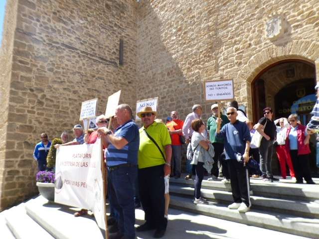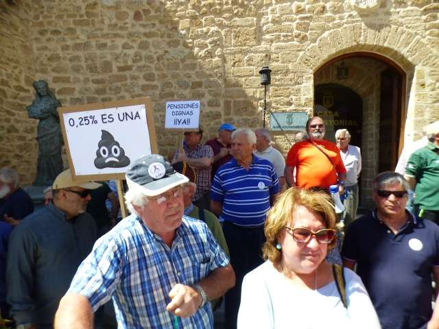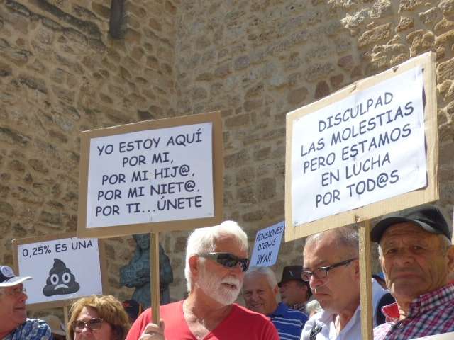 A las doce del mediodía, con pancartas en las que se podían leer sus reivindicaciones, estos ciudadanos han estado concentrados en torno a 45 minutos solicitando al Gobierno central la subida de las pensiones, no sólo las de jubilación, sino las de viudedad, orfandad, etc.