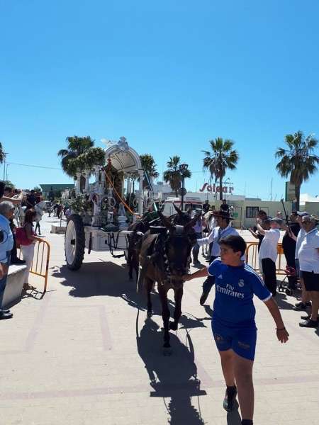 El buen tiempo les está acompañando de momento, jornadas de calor a determinadas horas del día que se viven con mucha intensidad. Ayer, los peregrinos roteños recorrieron varios kilómetros hasta llegar a Marismillas donde como es habitual, pernoctaron en su primera noche.