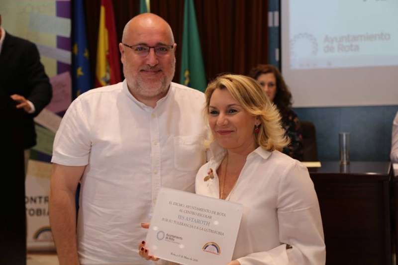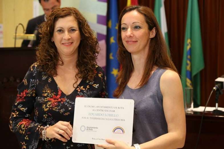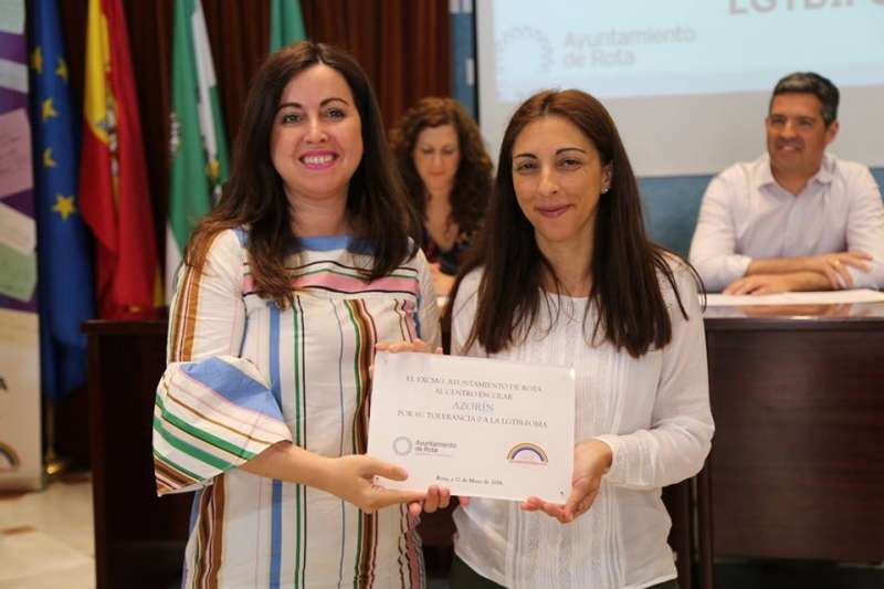El Ayuntamiento de Rota ha celebrado este jueves 17 de mayo, coincidiendo con el Día Internacional contra la Homofobia, la Transfobia y la Bifobia, un acto muy especial y significativo en el que ha entregado a distintos centros educativos un distintivo por su compromiso en el programa de diversidad afectivo sexual, que viene desarrollando la delegación municipal de Igualdad.