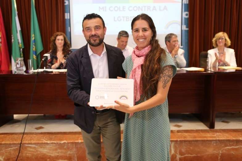 El acto ha contado además con la presencia de miembros de la Corporación municipal, del Inspector de zona de Educación, Juan Manuel Martínez, de Francisco López, coordinador LGTBI de la Junta de Andalucía, de Pablo Morterero, representante de la Asociación Andino Antonino, y representantes de los centros y alumnado.