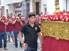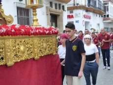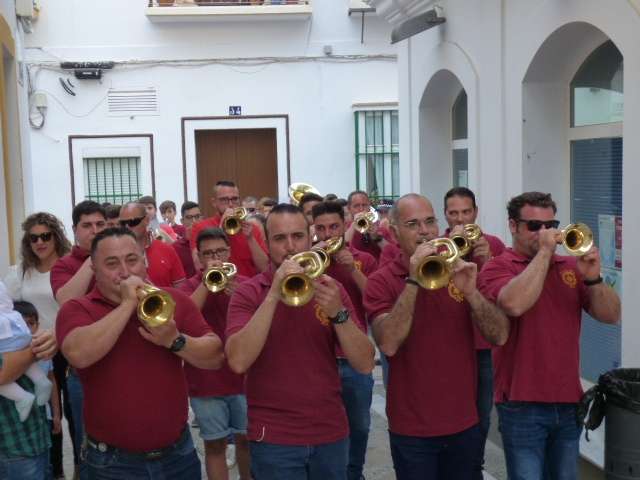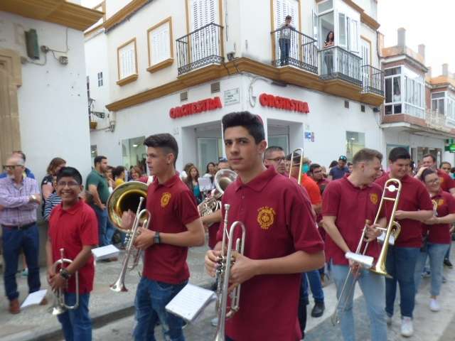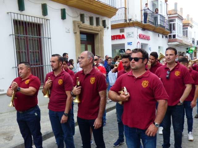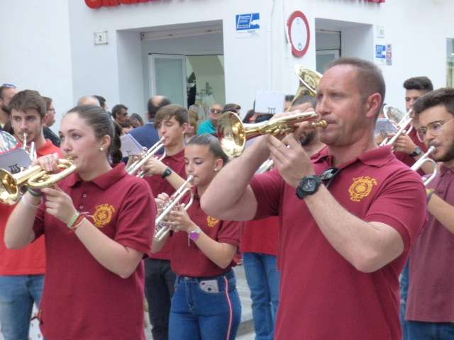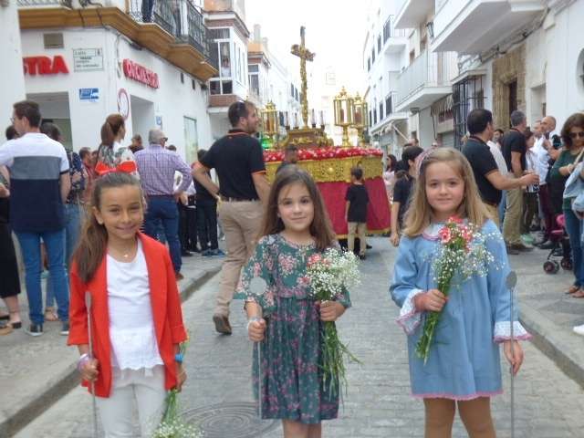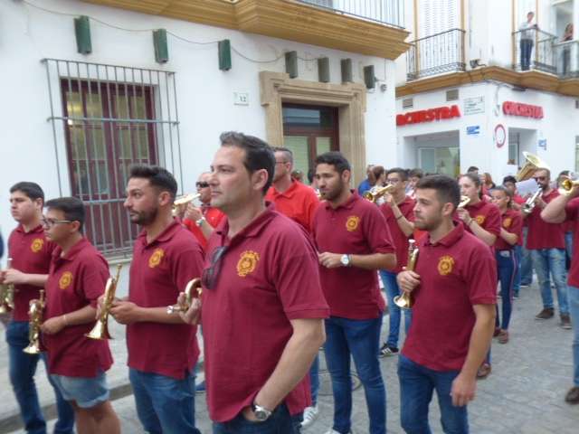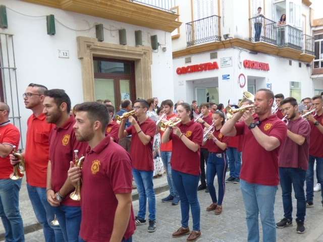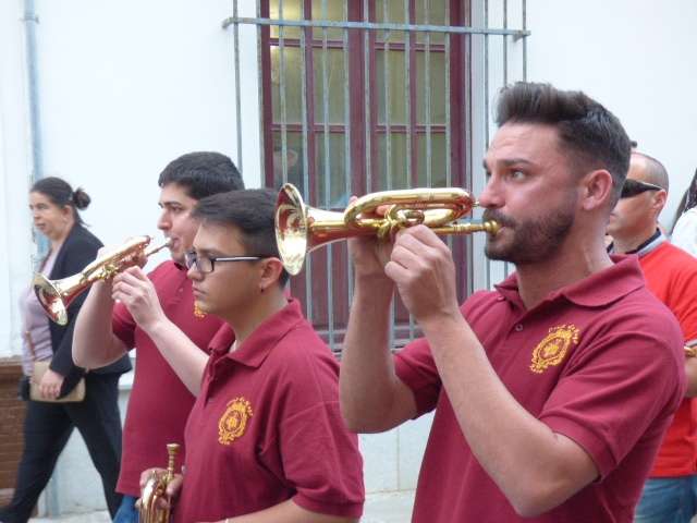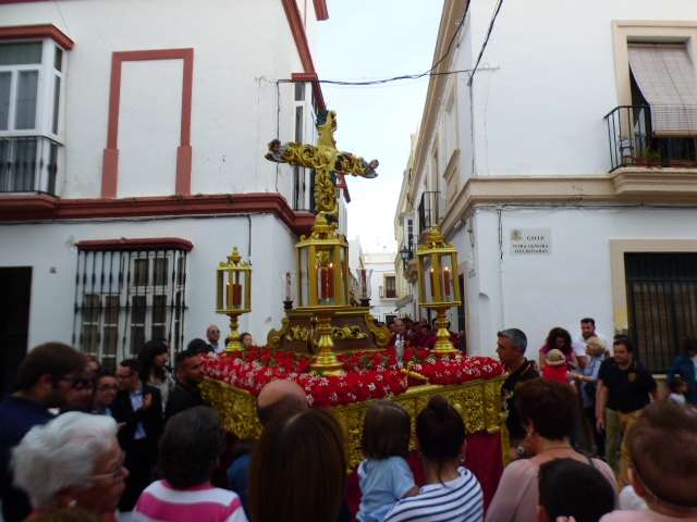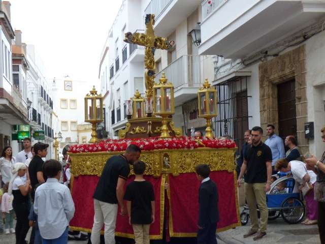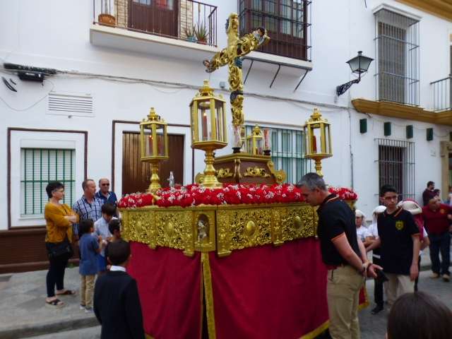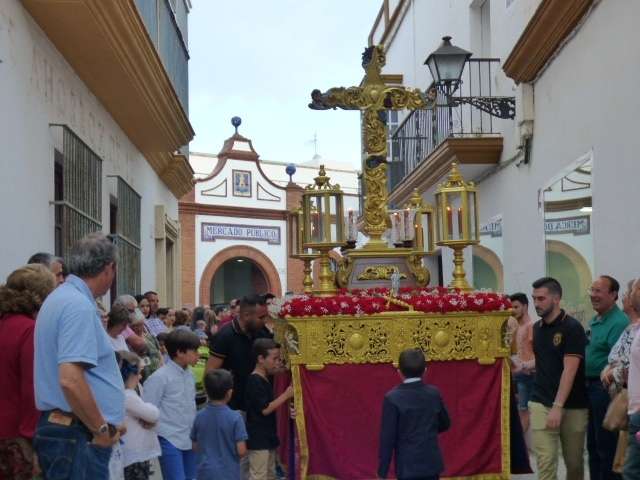 Abriendo la comitiva, solo tres chicas portaban varas y dejaban ver la Cruz de Mayo adornada con claveles rojos y paniculatas. Tras el paso, una numerosa Banda de Cornetas y Tambores de la Asociación Musical, Ruiz-Mateos poniendo los acordes musicales a esta singular procesión propia del mes de mayo que ha vivido mejores momentos en el pasado en lo que a participación se refiere. Aún así, los organizadores siguen haciendo un esfuerzo altruista por no perder la tradición de estos 35 años con la Cruz de Mayo en la calle y es cierto que cada salida, aunque cuente con un cortejo muy reducido, son muchos los ciudadanos que acuden a verla en su procesión.