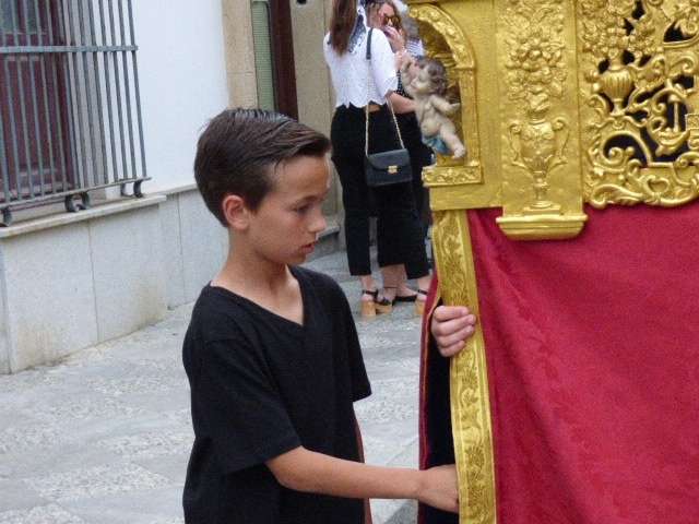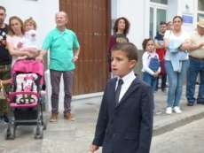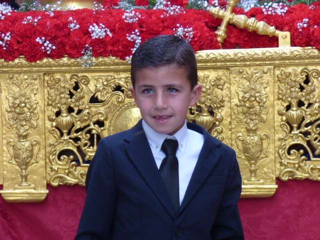 La Cruz de Mayo cumplió un año más con la tradicional cita y aunque fueron pocos los niños que se apuntaron para participar, los que lo hicieron disfrutaron de las dos horas y media de procesión admirados por el público que los esperó a pie de calle para aplaudir su labor como costaleros, contraguías y capataz.