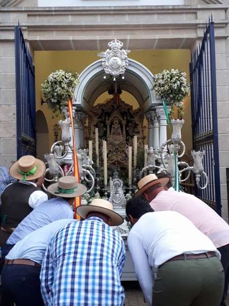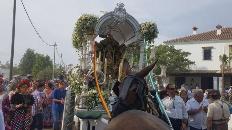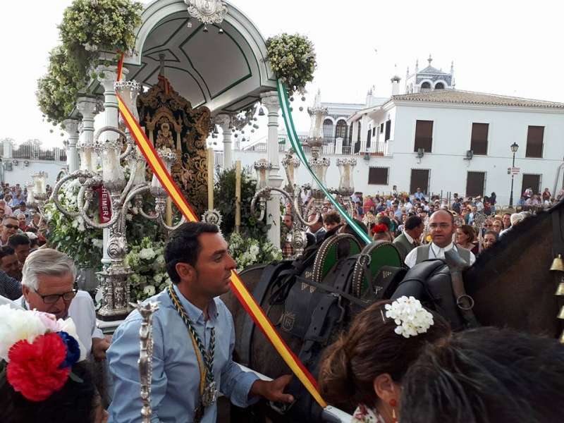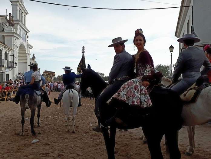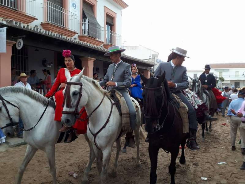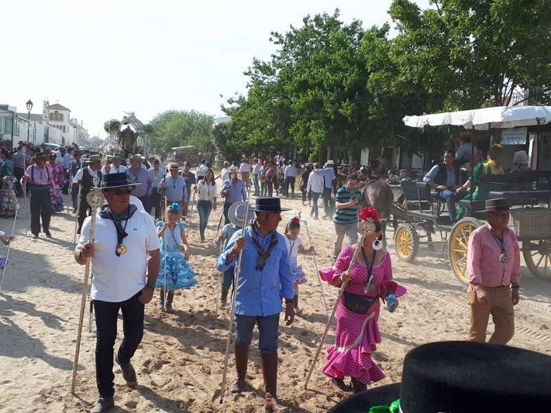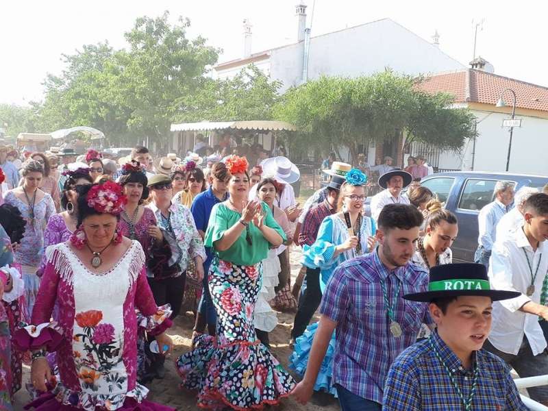 A las cinco de la tarde, tras haber preparado la carreta y ornamentarla con flores, partía de la casa de hermandad rociera roteña la comitiva compuesta por una amplia representación de peregrinos a pie y a caballo. Abrían el cortejo los piteros, y tras ellos, el resto de rocieros además de autoridades locales entre las que estaba, como suele ser habitual, el alcalde de Rota, Javier Ruiz Arana, acompañado de la delegada de Fiestas, Laura Almisas, para arropar a la hermandad en este acto especial.