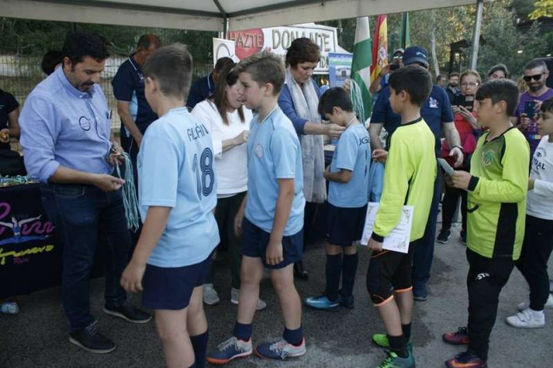 A los alumnos de la EFI les acompañaron los equipos de EF Chipiona, EF Conil, del colegio Azorín y de la Base Naval de Rota. Deportividad y solidaridad se dieron la mano en una tarde en la que además, se aprovechó para la entrega de trofeos y medallas a todos los niños contando con la participación de la teniente de alcalde, Encarna Niño, y la delegada de Promoción Turística, Yolanda Morales.