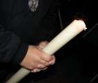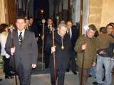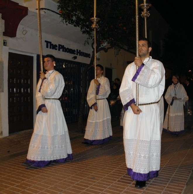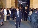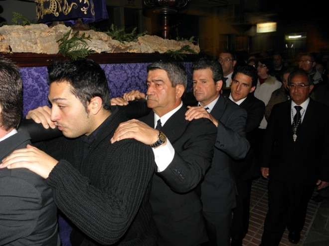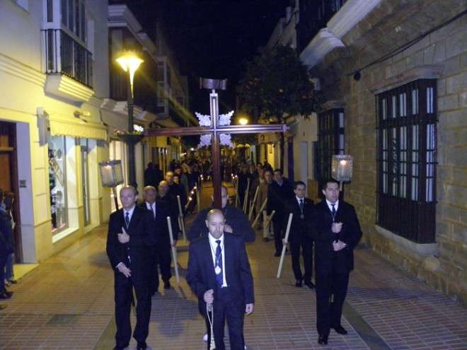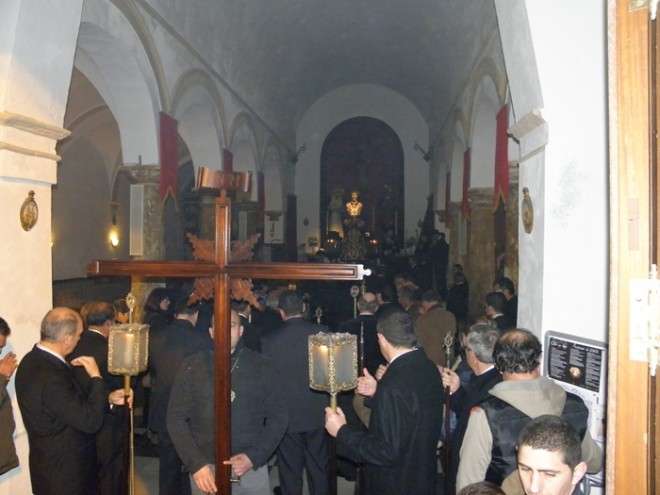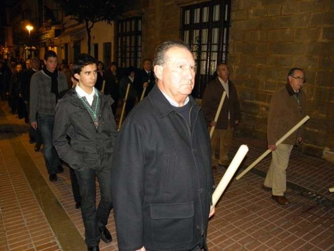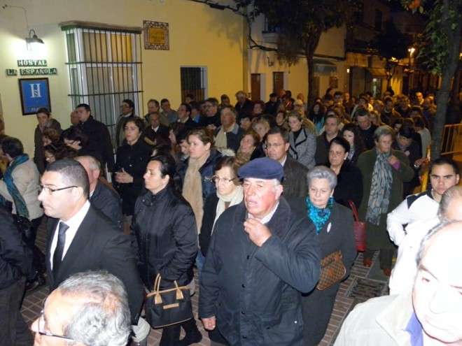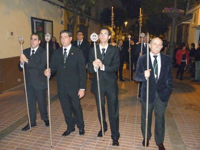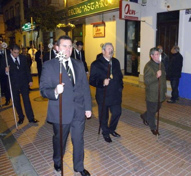 En el cortejo se pudieron ver las insignias más representativas de las hermandad y a hermanos portando velas. En absoluto silencio, sin exorno floral  y con la solemnidad que caracteriza a este Cristo, el capataz Arévalo Alonso, guió a su cuadrilla junto a los auxiliares Germán Patino, Juan Pablo Martín Bejarano y Antonio Ruiz.