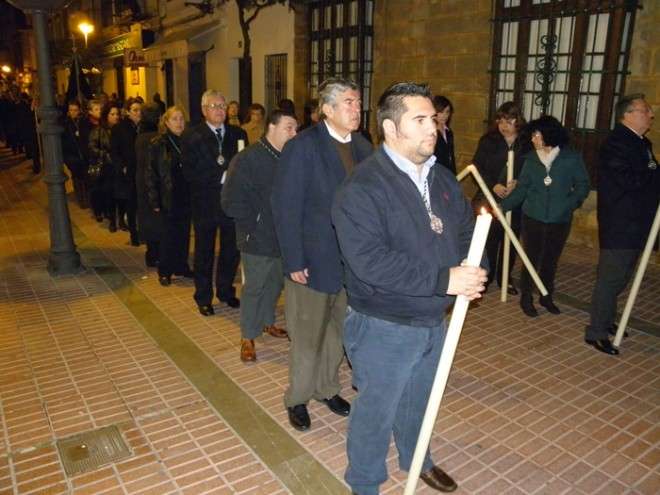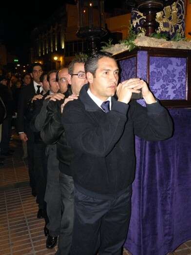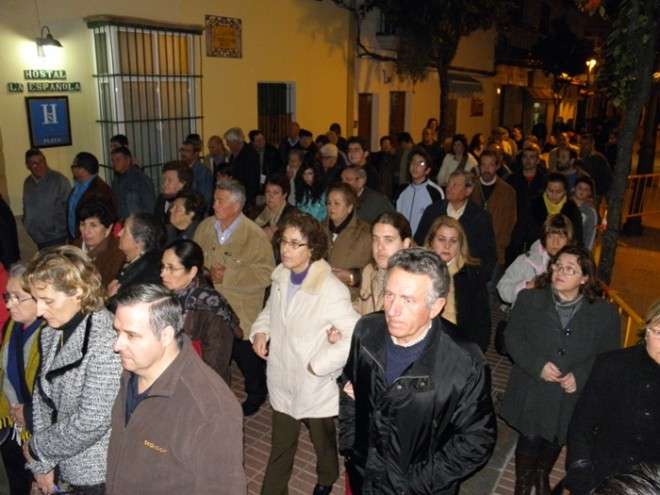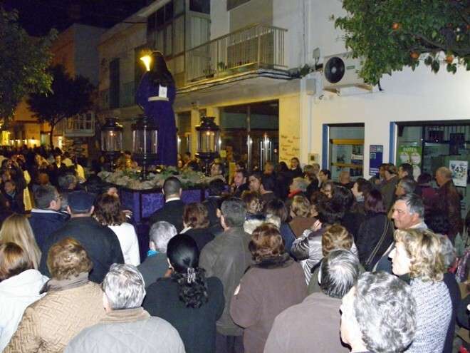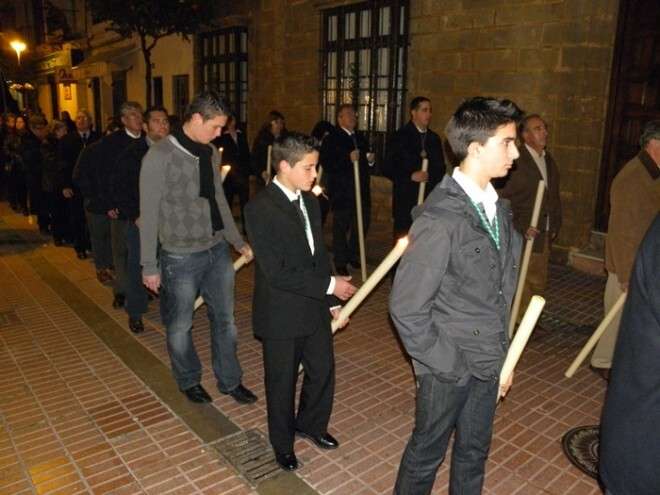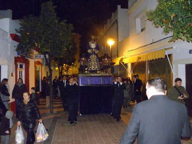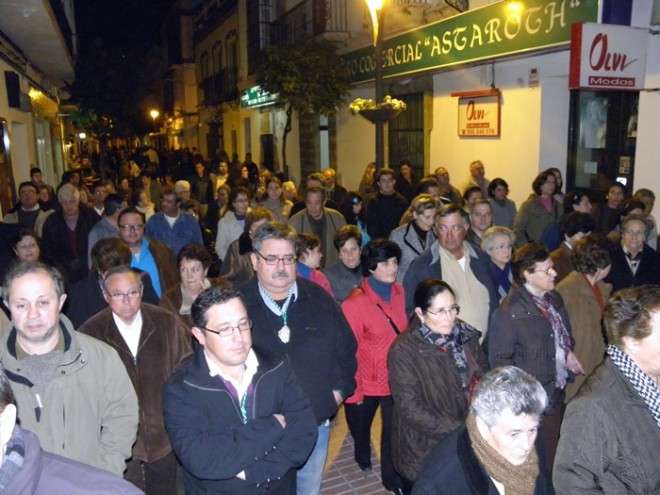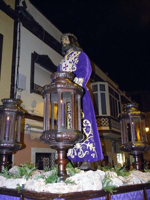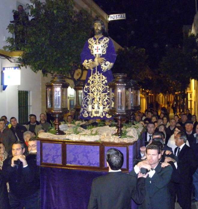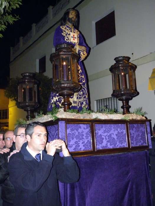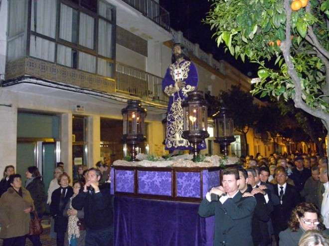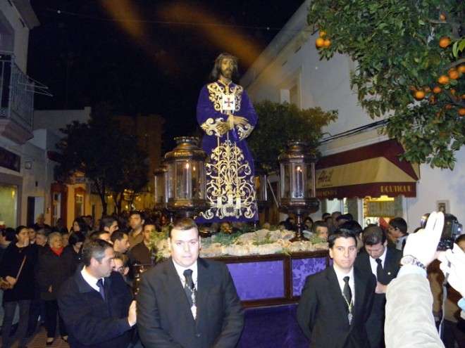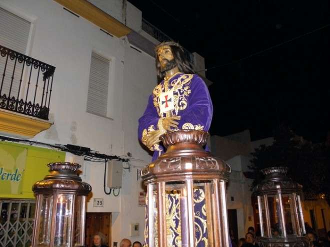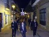 Anoche, en torno a las nueve, las puertas de la capilla de San Roque se abrieron para dejar pasar la imagen de uno de los Cristos más venerados en Rota a lo largo de todo el año. Portado en una pequeña parihuela por su cuadrilla de costaleros, El Cautivo salió a la calle haciendo el mismo recorrido que hará de nuevo el Viernes de Dolores en su traslado a la parroquia Mayor preparado para su salida procesional. Aunque fue un recorrido corto por las calles del centro, fueron muchos los roteños que no quisieron dejar a la imagen de El Cautivo sola.