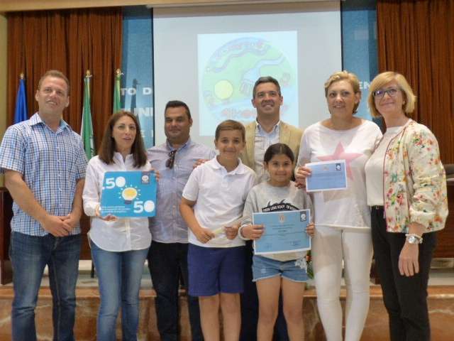 En este caso, el proyecto 50/50 además de crear conciencia en los más pequeños sobre este tipo de prácticas, incentiva a los que ahorran y esta mañana, a todos los colegios se les ha entregado el distintivo de ser centro colaborador del proyecto 50/50 si no además, el cheque con el 50% de la cantidad ahorrada en sus facturas de luz y agua ara que ese dinero sea invertido en los colegios en aquellas acciones que cada colegio estime oportuno. El 50% restante de la cantidad ahorrada, la invertirá el Ayuntamiento en los centros escolares en materia de mejoras para la eficiencia energética.