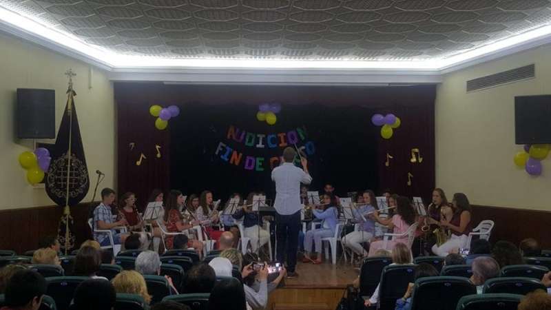 El salón de actos de la Casa de la Juventud acogió en la tarde de ayer lunes la clausura del curso de la escuela de música de la Hermandad de Nuestro Padre Jesús Nazareno. Una audición en la que participaron todos los niños que durante estos meses han aprendido o perfeccionado sus conocimientos musicales gracias a los profesores que se han implicado a la hora de inculcarles el amor por la música y los diferentes instrumentos.
