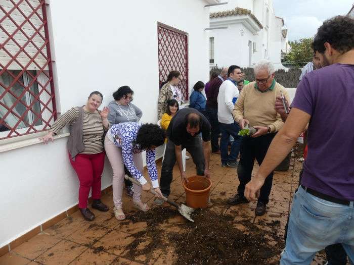 Ecologistas en Acción, dentro de las actividades que propone a varios colectivos con plantaciones y otros cuidados del medio ambiente, ha vuelto a contar con la colaboración de los chicos de la Asociación de Discapacitados de Rota que trabajaron juntos la pasada semana en el trasplante de 30 plantones de encinas, alcorques y algarrobos pasándolos de botellas a macetones que otros voluntarios habían sembrado el pasado invierno.