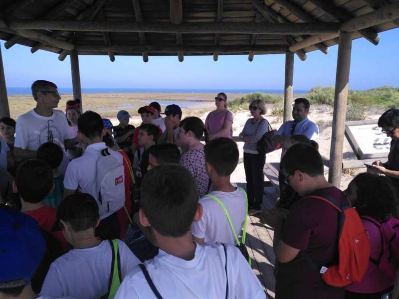 Los responsables de Medio Ambiente y Educación, Manuel Jesús Puyana Gutiérrez y Esther García, respectivamente, han querido compartir con uno de los grupos de escolares esta visita para la que se cuenta con la colaboración de la Asociación de Corraleros y Pescadores a Pie de Rota.