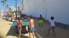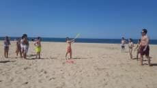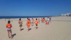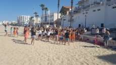Comenzó la jornada con una pequeña sesión de zumba a cargo de Dani Orcha, quien desde el primer momento se ofreció de manera desinteresada y tras unos divertidos bailes y coreografías, los alumnos tomaron su primer baño para refrescarse y dar comienzo a los juegos en la arena. Los alumnos formaron grupos con niños de otros centros y pudieron disfrutar en gran sintonía de juegos como "ultimate", baseball, "matar", "conoball" o tenis de mesa.