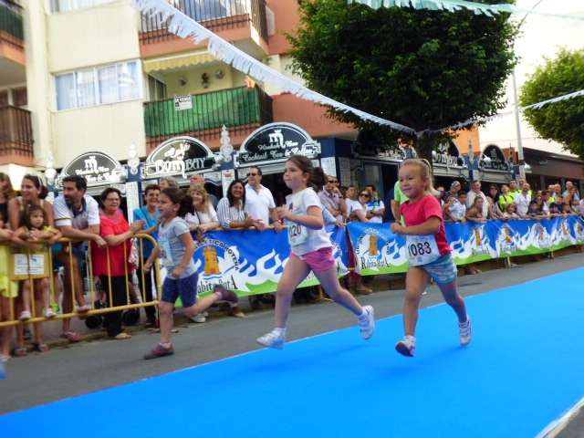 A las siete y media de la tarde comenzaban a correr los más pequeños siendo estos los que mejores imágenes suelen dejar. Las categorías pañal, pitufos y peques son sin duda, un gran reclamo que da el pistoletazo de salida a la carrera de San Juan que continúa con el resto de categorías con distancias adaptadas a las edades de los benjamines, alevines, cadetes e infantiles. Todos han ido tomando la línea de salida situada en la avenida San Fernando y recibidos en la línea de meta por aplausos de un numeroso público que jaleaba a los que más esfuerzo han puesto.