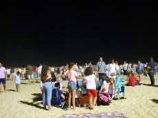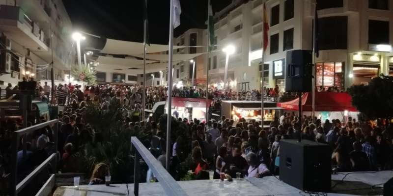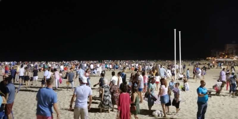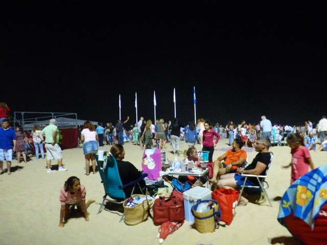 Pandillas de chicos jóvenes y no tan jóvenes, familias y grupos de amigos con sillas, sombrillas para el relente y comida y bebida se pudieron ver a lo largo de toda la playa, especialmente el tramo más cercano a la bajada de la plaza Jesús Nazareno donde además del ambiente propio, este año coincidía con un concierto enmarcado dentro de la nueva edición de Food Trucks que desde el viernes está en el paseo marítimo de la Costilla ofreciendo comida callejera de calidad. "La banda del pelícano" comenzó a tocar y pronto se metió al público en el bolsillo haciéndolo bailar y cantar canciones conocidas por la gran mayoría.