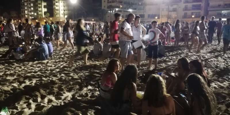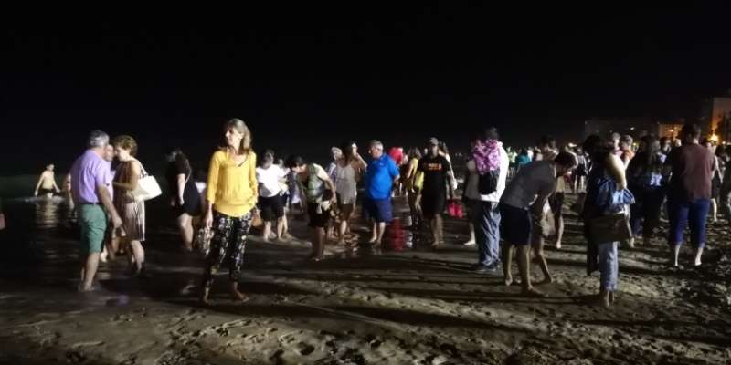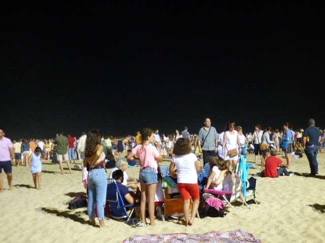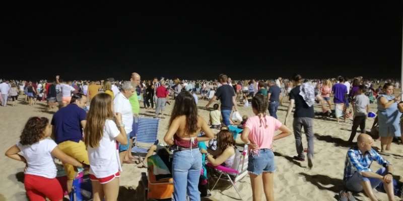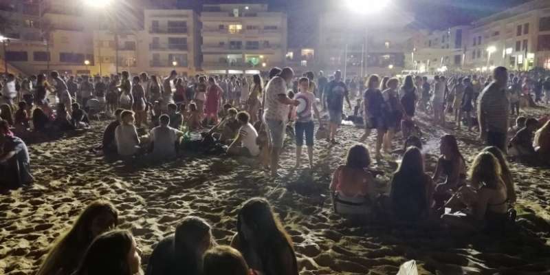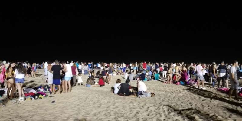 Tras la quema, la música sonaba en cada punto y como marca la tradición, los ciudadanos, cientos de ellos, se bajaron a la playa para mojarse los pies y  unir fuego y agua en una noche veraniega. La playa de la Costilla, que este año estuvo iluminada con focos a diferencia de ediciones anteriores donde estaba oscura,  presentaba una estampa muy concurrida. Y es que además de los ciudadanos que vestidos de calle se animaron a bajar a mojarse los pies, los hubo que ya planeaban una noche larga y se habían hecho con el avituallamiento necesario para disfrutar de San Juan.