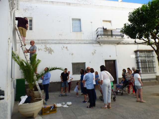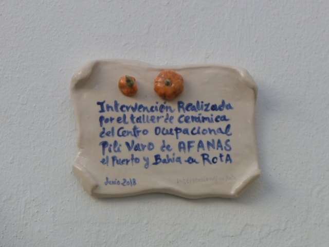 El trabajo conjunto que han llevado a cabo los chicos del centro ocupacional "Pili Varo" y miembros del grupo "Intervenciones en Rota" ha dado como resultado que desde ayer por la tarde, una nueva fachada de una casa del centro histórico de la localidad luzca las identificativas calabazas roteñas.