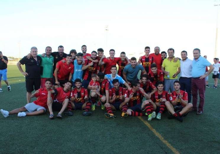 [Img #95484]La UD Roteña ha conseguido el ansiado ascenso a División de Honor Andaluza, tras un empate a uno frente al GE Bazán. Un partido agónico, que cierra de manera brillante una temporada de altibajos. El gol de Pepe Reales, la lesión de Jairo en un clamoroso penalti con posible rotura en el brazo, un árbitro desatado y pitando lo que le vino en gana. Dos aficiones apoyando a su equipo, un penalti fallado por Pepe Reales, varias ocasiones que se fueron al limbo y que pudo adelantar el final feliz. Pero llegó la fiesta, jugadores y aficionados se fundieron en un abrazo sobre el Huerta Mata de Chiclana, fiesta que continuó en Rota hasta altas horas de la madrugada y que tendrá continuidad en los próximos días.